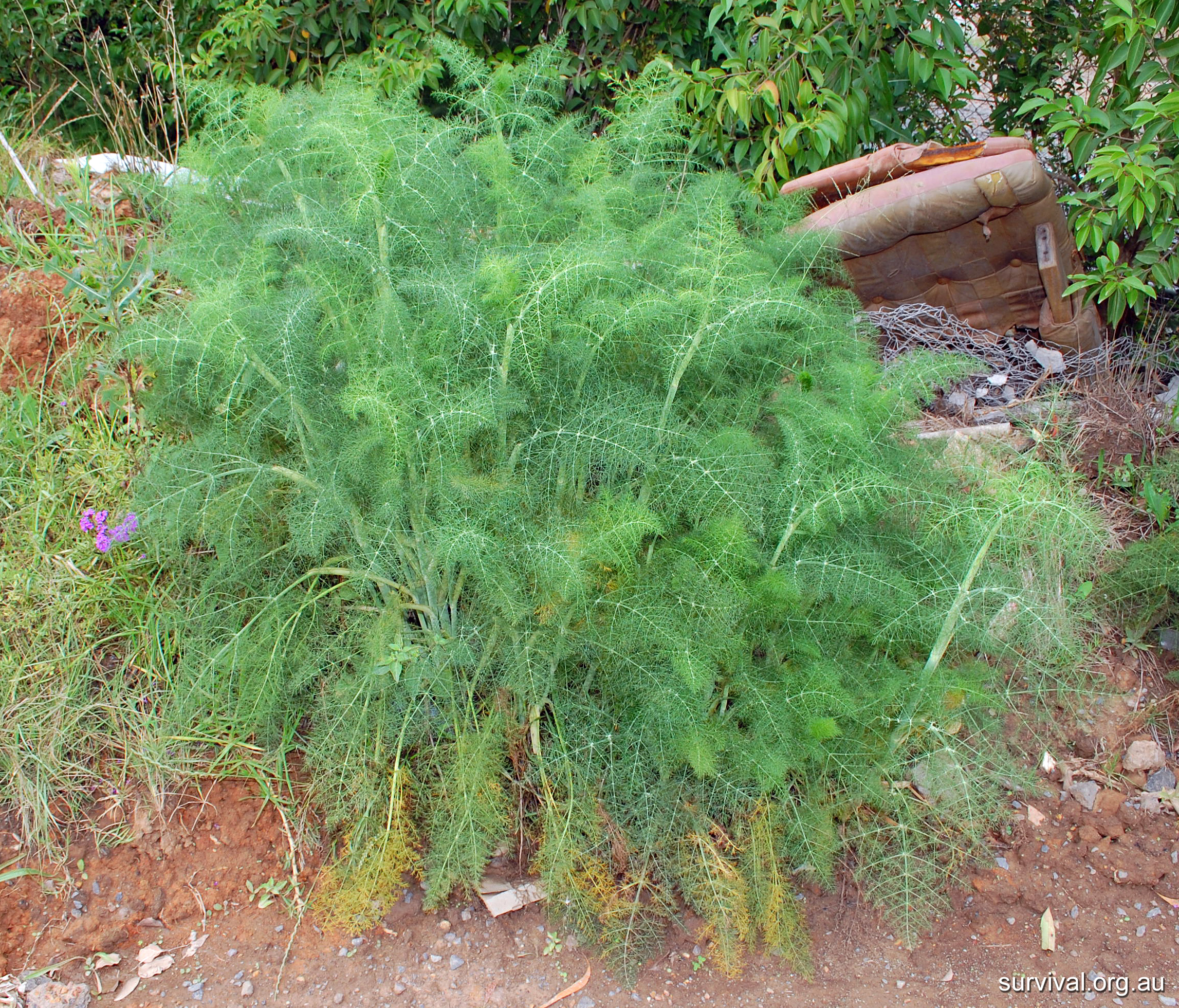 The purple flower on the left of the plant above is from another plant, not fennel. Fennel has yellow flowers.