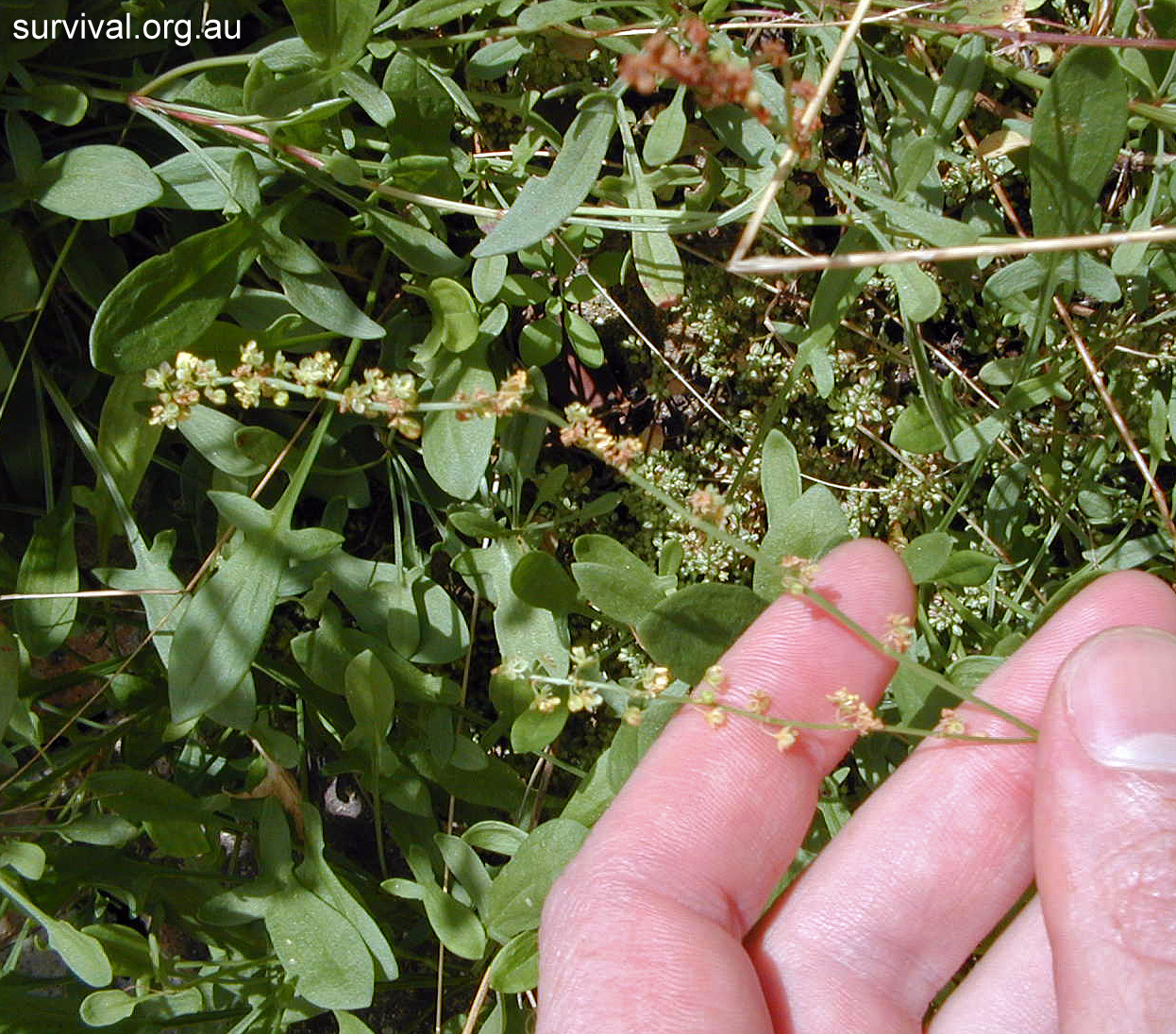 Rumex acetosellaSheep SorrelOther names: Sorrel, red sorrel, sour dock, Acetosella angiocarpa, Acetosella vulgaris, Rumex angiocarpa Rumex acetosella, Sheep Sorrel has distinctive leaves that make it easy to identify. There is meant to e a reasonable amount of oxalic acid in this plant, so some people say that it is best not to eat too much of it (though other people say that there is oxalic acid in many of our store-bought foods that no-one complains about, so I will have to look into this more).