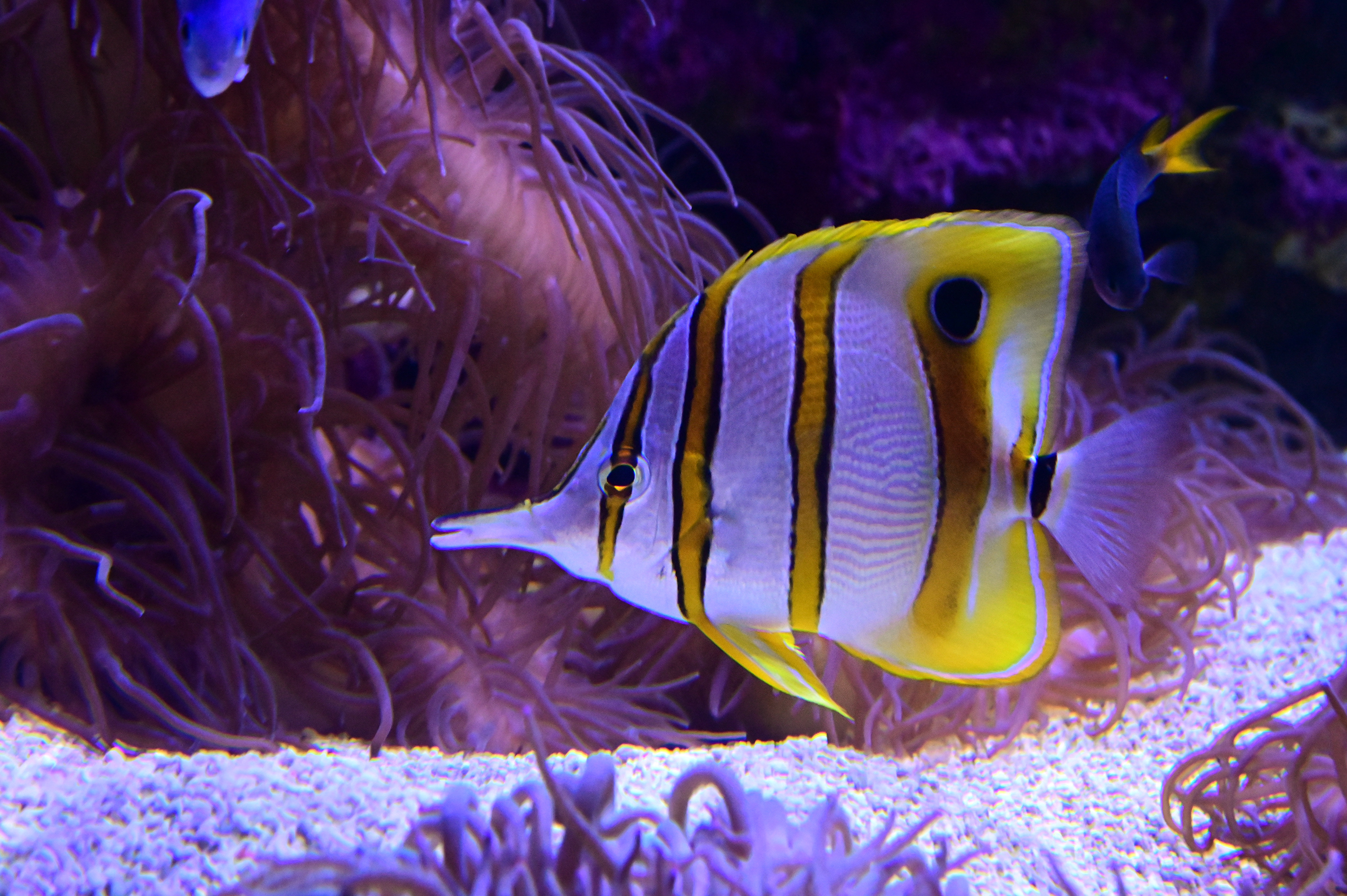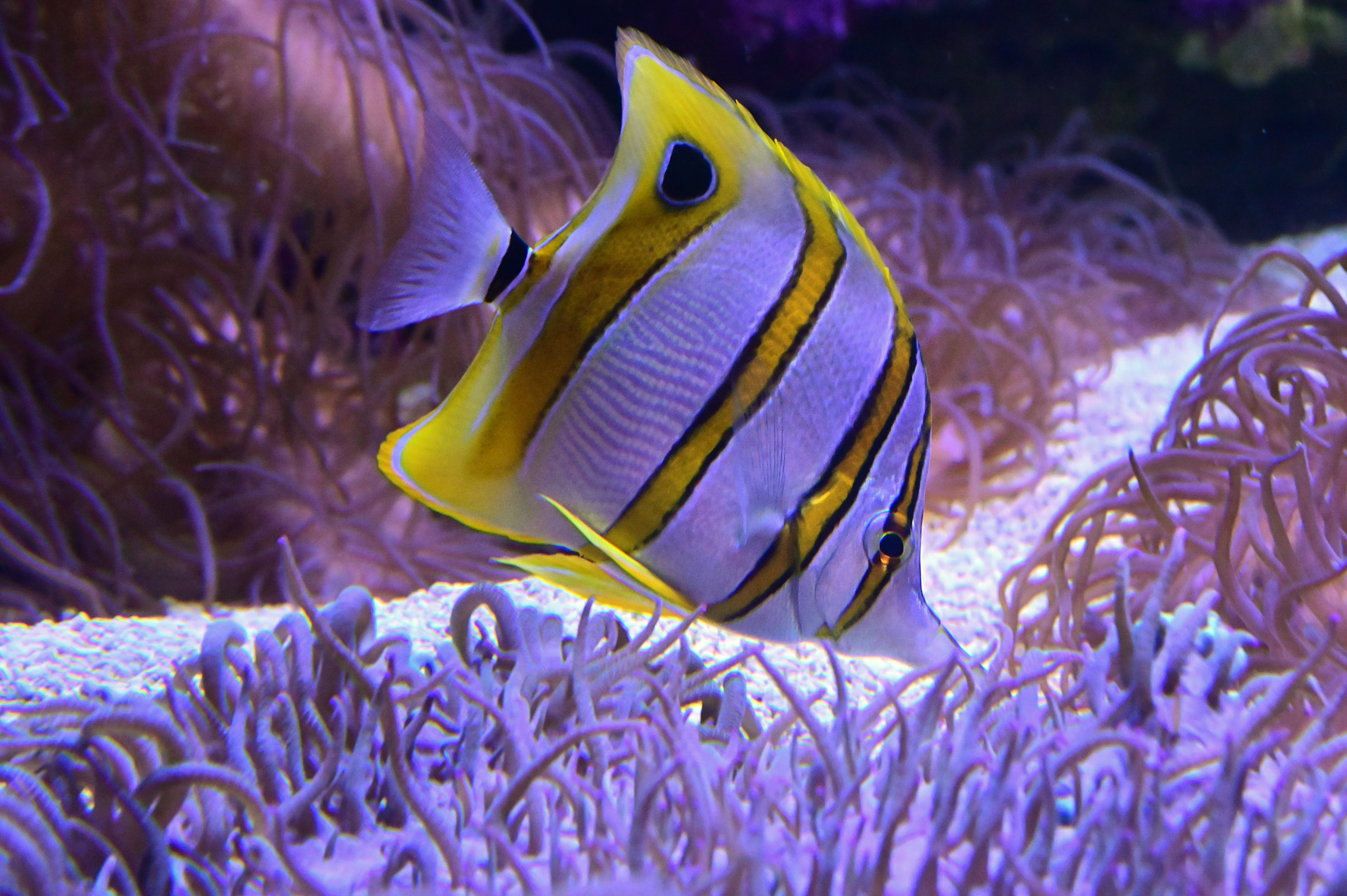 Other Names: Beaked coral fish Family: Chaetodontidae (butterflyfishes) Size: Up to 20 cm Distribution: This species occurs from southern Japan and Taiwan throughout the Coral Triangle, northern Thailand and the Andaman and Nicobar Islands to the Solomon Islands and the northern coast of Australia from the Gulf of Carpenteria to Sydney. Status: Least Concern Habitat: Copperband butterflyfish are found at depths of 1-25 metres either alone or in pairs. These fish form monogamous pairs during breeding. They are usually found on coral reefs or rocky shorelines, and also in estuaries and silty inner reefs. References: Wikipedia, IUCN Red List About the Copperband ButterflyfishThe copperband butterflyfish can be kept in saltwater home aquariums, but can be difficult to look after.