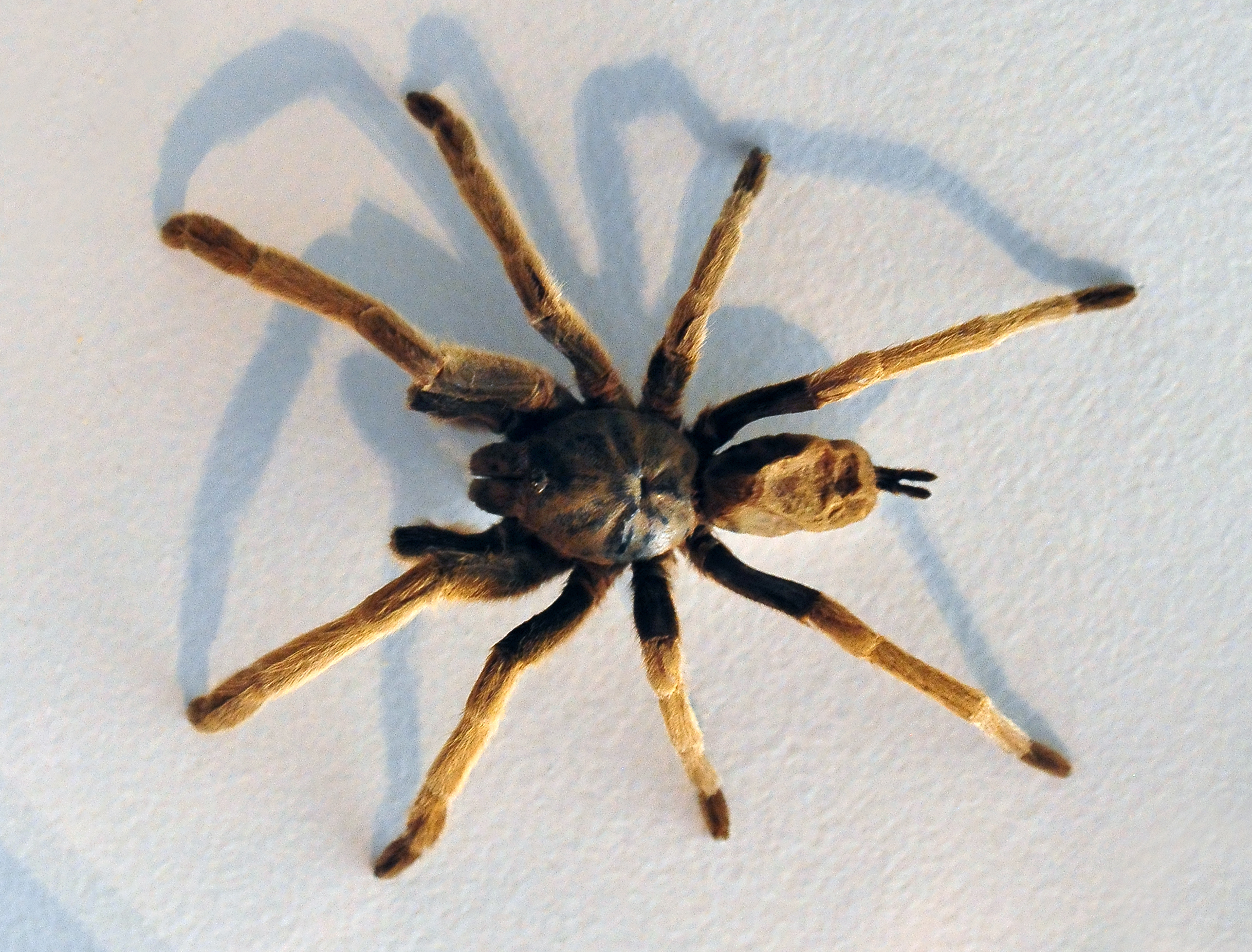 Other Names: Whistling Spider, Barking Spider, Bird-Eating Spider, Selenocosmia crassipes (the current generic name Selenocosmia has been wrongly applied to the Australian species and will be revised, the generic name Phlogius being reinstated). Family: Theraphosidae (Tarantulas), currently 7 known species in Australia, estimated total 30 Australian species, about 950 species in the world. Size: Male body length up to 70 mm, Female body length up to 90 mm. Legspan up to 220 mm (22 cm). Distribution: Throughout Mid-East and North Queensland. Other Australian tarantulas may occur more southerly, to North-Western Victoria. Status: Tarantulas are highly threatened by the pet trade which is responsible for about 2000 tarantuals being sold in each state each year. From the Australian Museum, "The species that is most often kept as a pet is often sold as Selenocosmia crassipes. However Habitat: Likes areas with plants. Lives in burrows in the ground up to one metre deep. May come to the surface in heavy rain. References: Whyte and Anderson, Framenau, Baehr & Zborowski, Wikipedia, Australian Museum. About the Eastern TarantulaThe Eastern Tarantula is Australia's largest spider. Diet: The Eastern tarantula has been known to eat small birds, hence the nickname "Bird-eating spider"; however, they typically eat large insects, small mammals and amphibians, such as cane toads and frogs. Danger: Wikipedia says a bite from an Eastern tarantula can cause up to six hours of vomiting, but is not fatal to humans. They can be fatal to smaller animals like dogs and cats within 30 minutes. Treatment: No antivenom is given (there is none available nor is it required). Note that dead spiders usually fade in colour, so nearly all the spiders will look blacker or darker in colour in real life than they do in the photos of dead spiders from the museum.