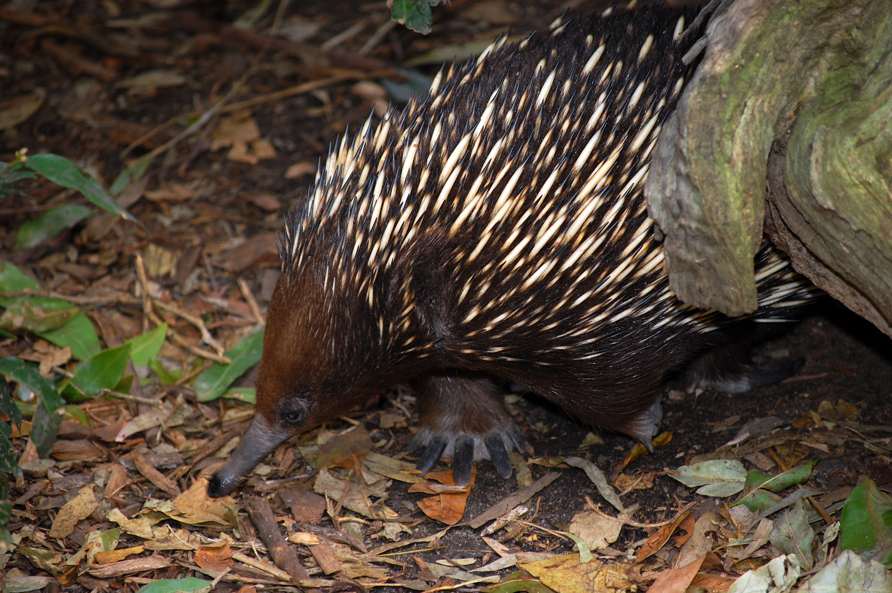 Other Names: Spiny Anteater Family: Tachyglossidae Size: Head-to-body 23-35 cm. Tail 8 cm. Weight: 2-7 kg Distribution: All of Australia. Status: Common to sparse. Habitat: Almost all terrestrial (land) habitabs except for intensively managed farmland. References: Menkhorst and Knight, Wikipedia. About the Short-beaked EchidnaThe echidnas are named after Echidna, a creature from Greek mythology who was half-woman, half-snake, as the animal was perceived to have qualities of both mammals and reptiles. Weight: 2-7 kg Diet: Ants, termites, other soil invertebrates, particularly beetle larvae.