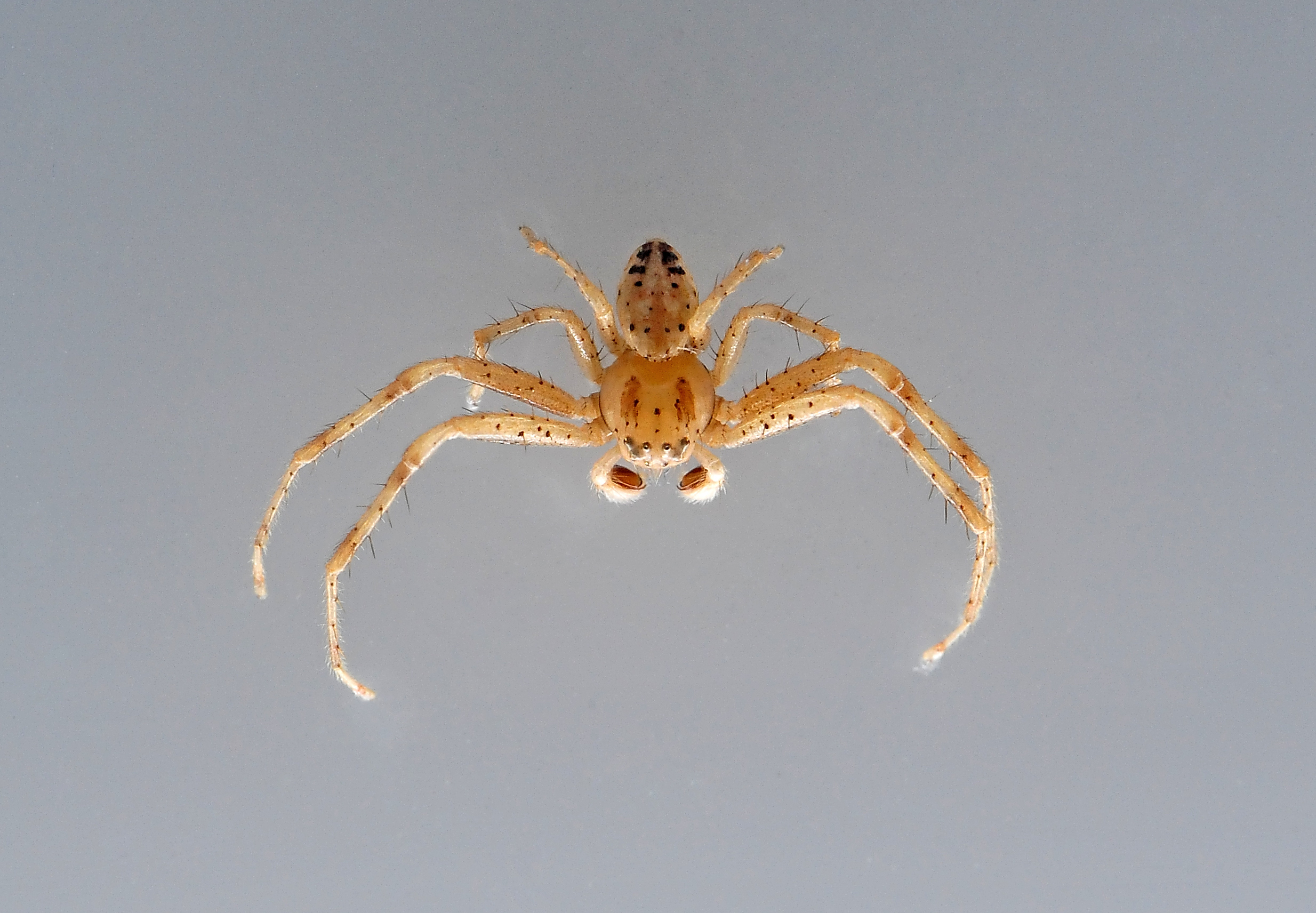 Source: Wikipedia. Public domain photo by USGS Bee Inventory and Monitoring Lab. An unknown crab spider (family Thomisidae) or perhaps running crab spider (family Philodromidae). Beltsville, Maryland, USA. High Resolution 2136 x 1884.