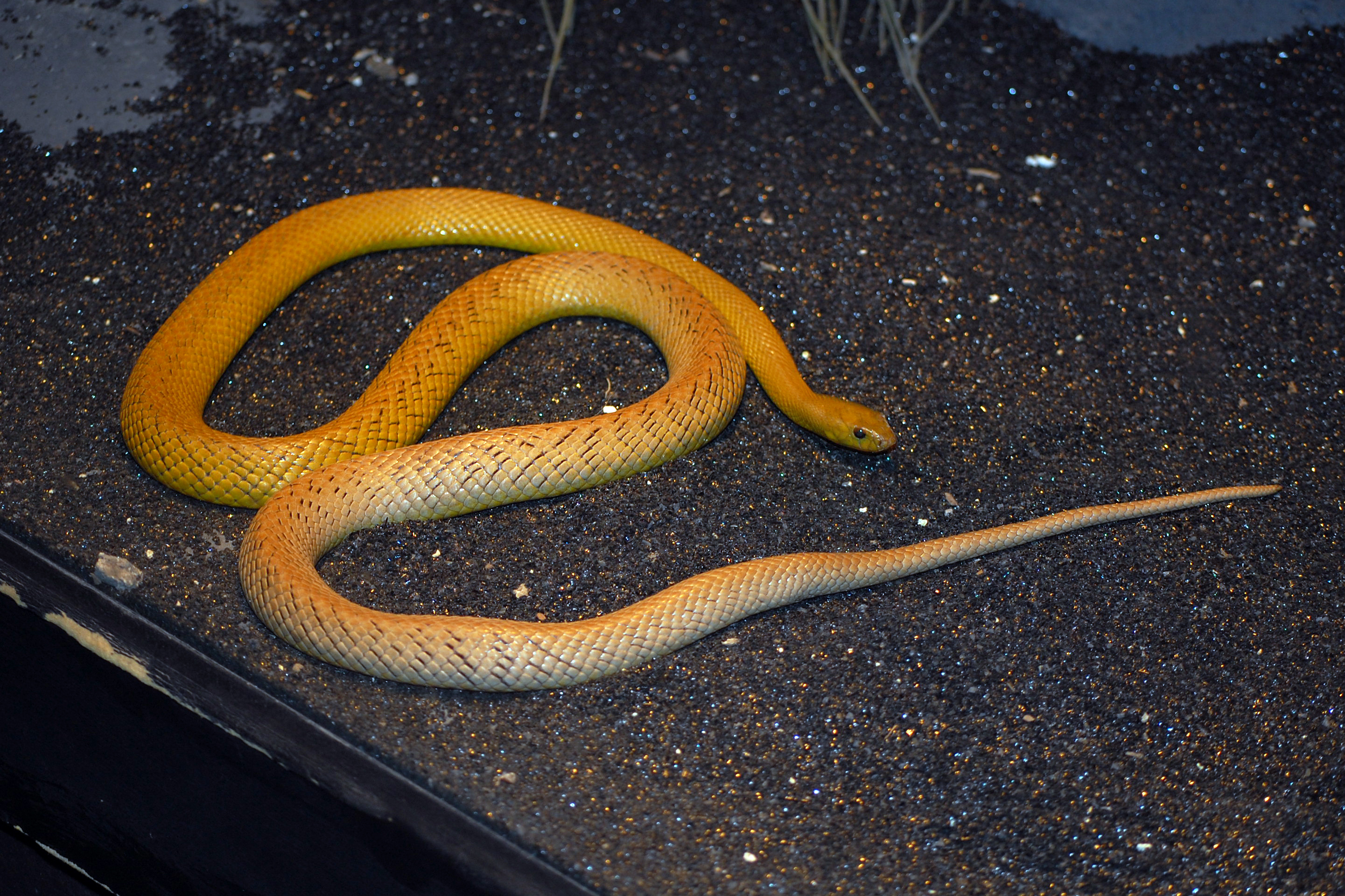 The venom of the inland taipan is the most toxic known for any terrestrial snake (non-sea-snake). Their head and neck colour changes from very dark to black in winter, and fading to a lighter yellowish colour in summer. Underneath they are cream to yellow with orange blotches.