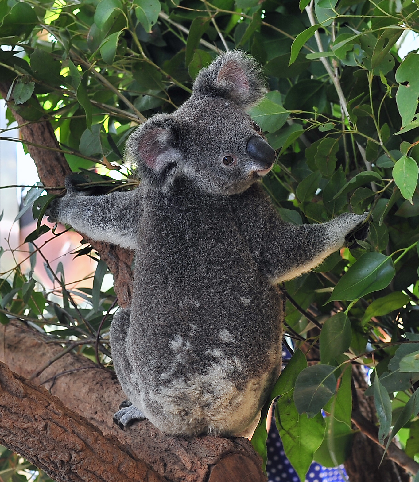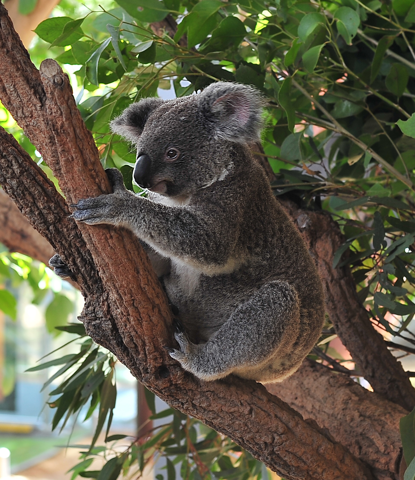 Other Names: Koala "bear", may be confused with the "drop bear". Family: Phascolarctidae, the koala is the only living species, about 10 extinct species from fossils Size: 65-82 cm Distribution: Some parts of Eastern Australia Status: Vulnerable Habitat: Open eucalypt woodlands References: Cronin's Key Guide to Mammals, Van Dyck, Gynther and Baker, Menkhorst and Knight, Wikipedia. About the KoalaThe koala is one of the most famous Australian animals. They look so cuddly and sleepy. They aren't really cuddly but they are really sleepy. Koalas are largely sedentary, and sleep up to 20 hours a day. They spend most of their time asleep digesting their food, which is hard to digest and consists of leaves, mainly from certain species of eucalyptus trees. They are sometimes called "bears", but koalas are masupials and not a type of bear at all. Their closest living relative is the wombat. Sometimes koalas are confused with drop bears. The drop bear is the most feared of all australian animals, and has been seen by very few people who lived to tell of it. They look similar to koalas but of course with much larger teeth. You can learn more about drop bears from a reliable source of information called the internet.