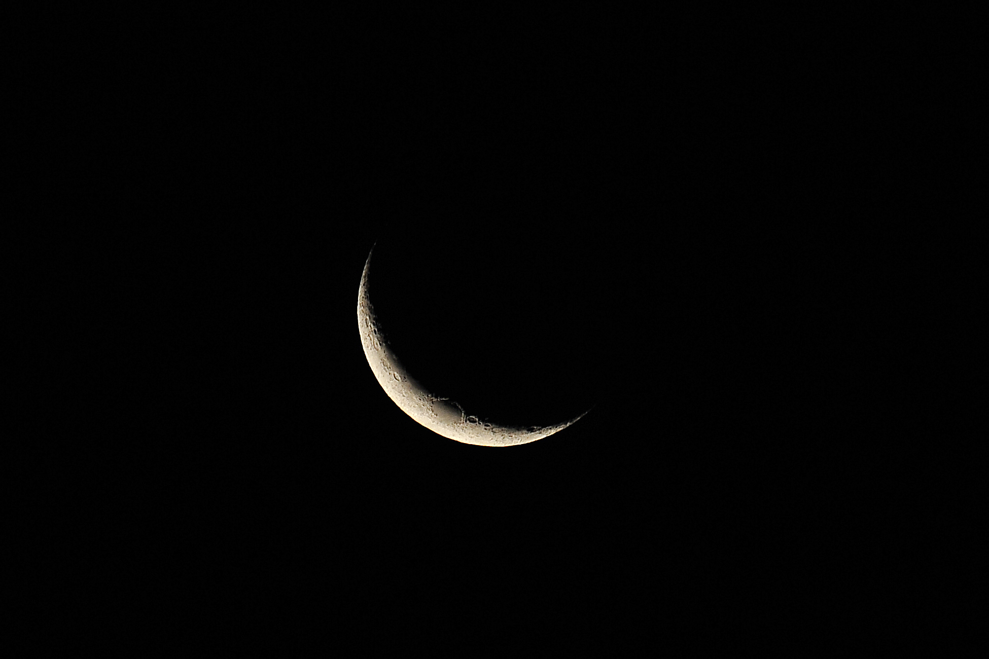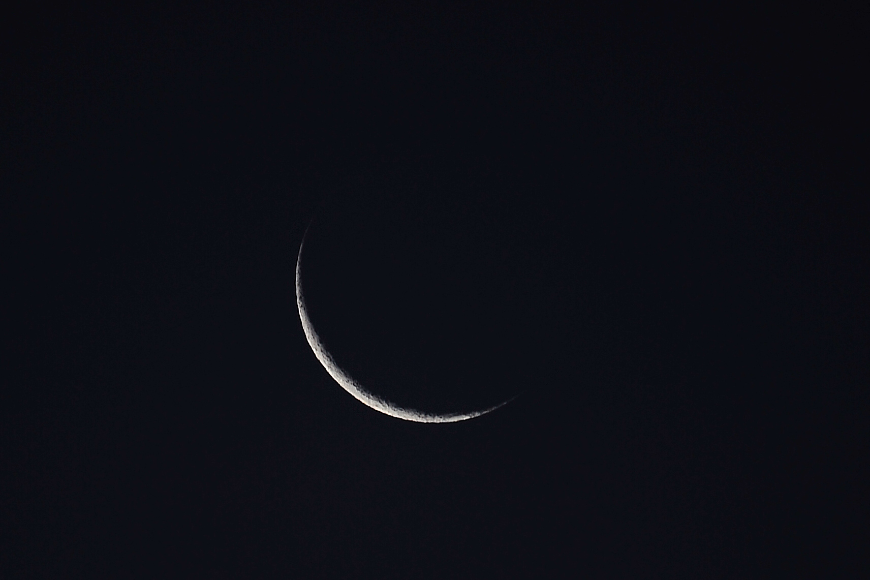 Day 51 - Friday, 28 April 2017 - 2 Day Old MoonToday just after I was at my secret spot I noticed the moon looked very close to new. I always love looking at the moon when it's really thin in the sky like this, it makes me feel happy and excited like it's the beginning of good new things. When I saw it this month, I got the idea to try to photograph it every night and journal it, and try to explain how the phases work. I took this photo which was the best of several, propping up the 500mm long Sigma lens on a handrail over a balcony.