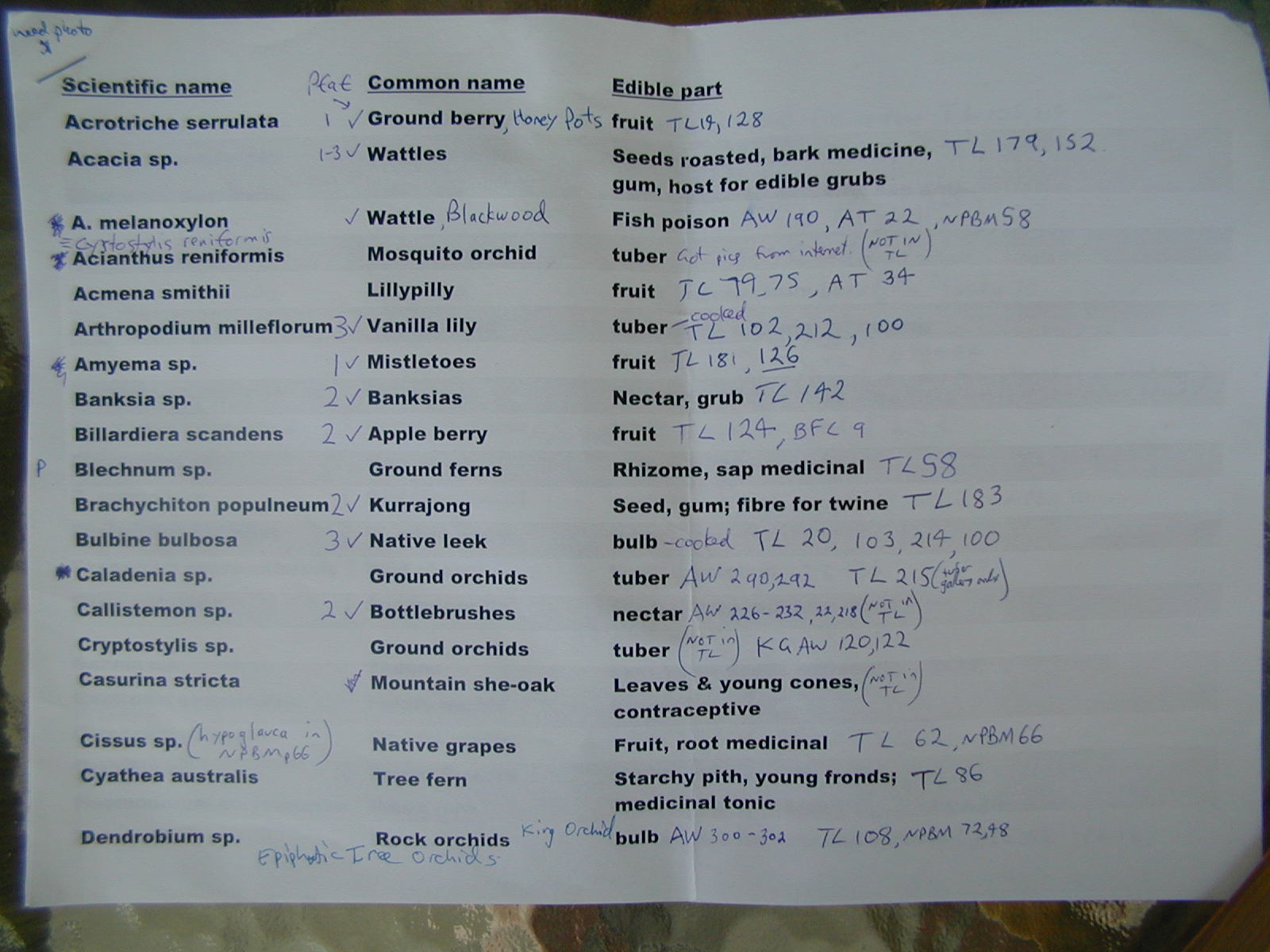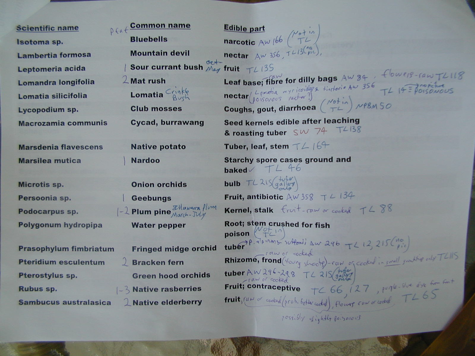 Almost all (all but one, or something like that) of the plants on the list can be found in the NSW PlantNet database. I looked up all the plants and printed an A4 page of information about them from PlantNet, and put them together in a folder.