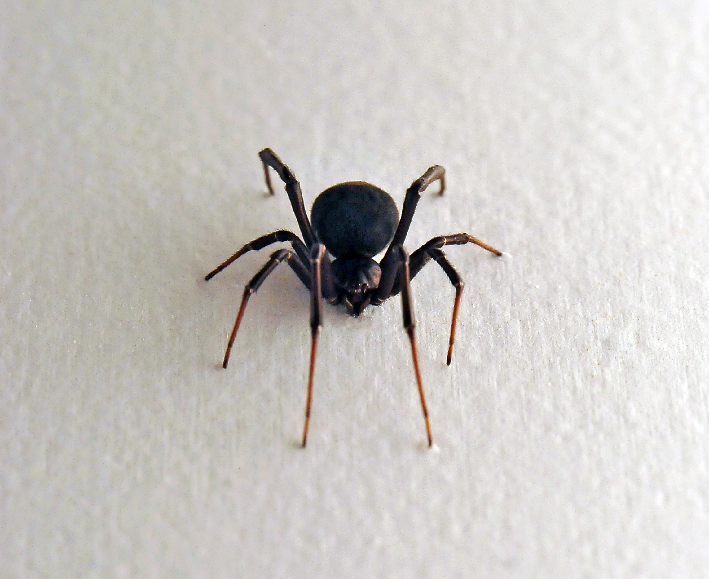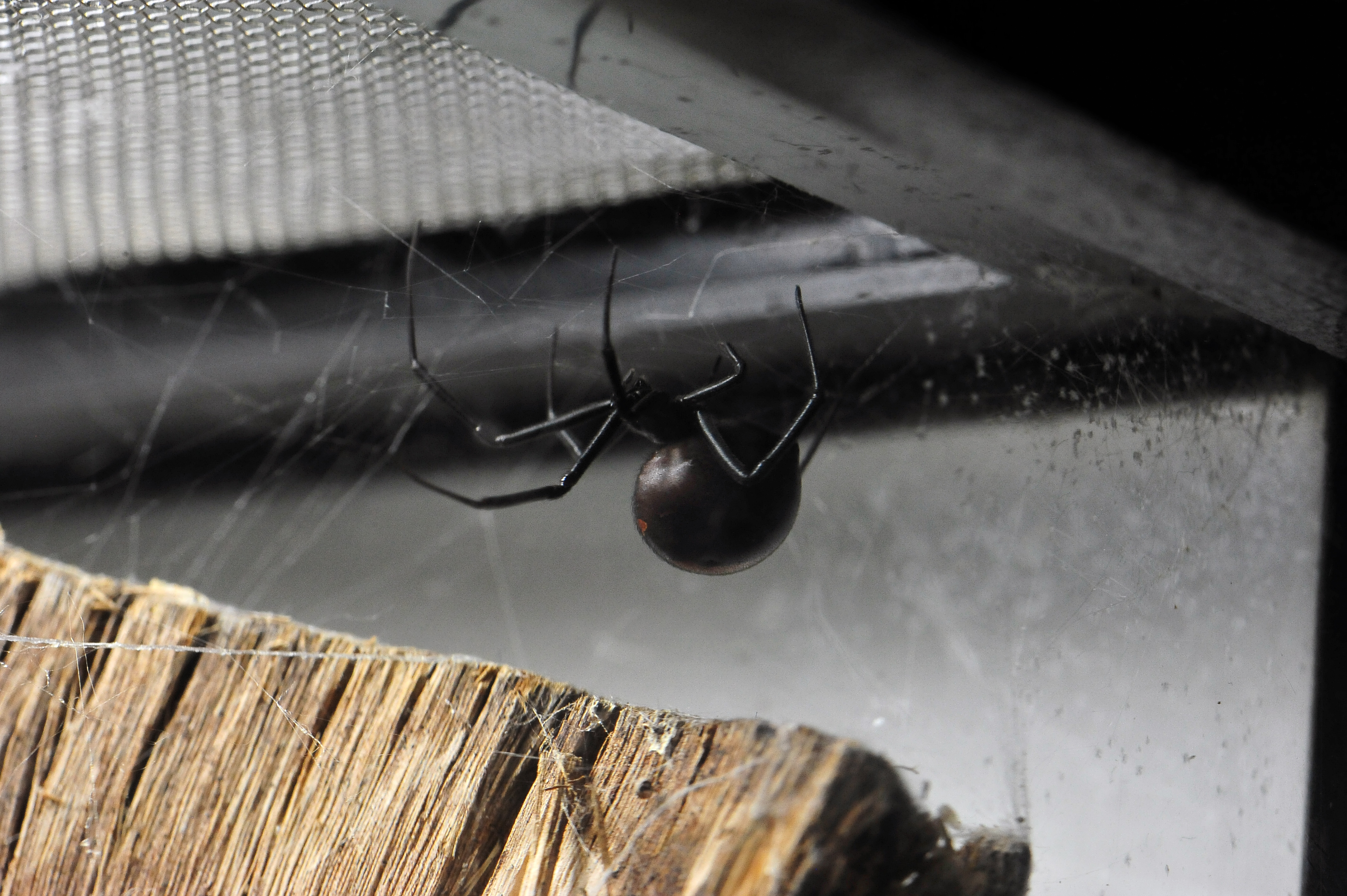 Danger: Family: Theridiidae (Tangle-web spiders, cobweb spiders or comb-footed spiders). Nearly 100 Australian species known. Estimated 500 total Australian species. 2200 species in the world. Size: Male body 3 mm, female body 10 mm Distribution: Widespread across Australia. Habitat: Redback spiders are often found inside suburban houses and especially around the outside of houses, and in gardens. References: Wikipedia. Whyte and Anderson. About the Redback SpiderThere's an urban legend about a "hippie" or "feral" guy who lives wild, almost never showers or changes his clothes, and has very long hair with dreadlocks. He starts feeling sick all the time, even more than usual, and hallucinating. At first he thinks it's just from his usual drug use, but after a while it gets really bad and he goes to see a doctor. The doctor finds several redback spiders living in his hair, which are occasionally biting him. I have no idea whether or not that story is true, but the other legend about redbacks - being bitten when on the toilet seat - is definitely true and has happened many times to people sitting on outdoor toilets. There's even a classic Australian song about this. I've never been that scared of redbacks since there were a lot of them in the garden where I used to play as a child, and I never knew of any problems with them. I was very careful not to touch them of course. They are quiet and don't move very fast, often they're completely still. However they can be very dangerous (see below). Once in year five of primary school, I was sent to sit outside the classroom on detention. After a while another boy was also sent out. He was one of those "wild" kids who was put on detention a lot more than me. We found a redback spider nestled in the corner of some brickwork near where we'd been told to sit. So his idea of passing the time was to pick it up and play with it in his hands for several minutes. I thought (correctly) that he was crazy. It didn't bite him but it easily could have. Absolutely do not consider trying this, as it could be fatal. Danger: The redback is one of the few spider species that can be seriously harmful to humans, and its preferred habitat has led it to being responsible for the large majority of serious spider bites in Australia. In 2016, 22 year-old Jayden Burleigh died after a redback spider bite, though a few news sources said it wasn't 100% confirmed that the spider bite was the cause of his death. There have been no other deaths recorded from redback spiders since 1955, a year after redback antivenom was introduced. The female redback spider is much more dangerous than the male (the opposite of funnel-web spiders). However the male is very very tiny, and brown, so if you see an Australian spider that looks black with a red stripe, like what's usually thought of as a redback spider, it's a female. The redback spider is responsible for far more envenomations requiring antivenom than any other creature in Australia. Estimates of the number of people thought to be bitten by redback spiders each year across Australia range from 2,000 to 10,000. Treatment: Redback spider bites are usually far less serious than funnel-web spiders. From Wikipedia: Treatment is based on the severity of poisoning from the bite; the majority of cases do not require medical care, and patients with localised pain, swelling and redness usually only require local application of ice and simple oral analgesia such as paracetamol. Pressure immobilisation of the wound site is not recommended, as the venom spreads very slowly and is not affected. Keeping the victim still to reduce the spread of the venom is beneficial. Hospital assessment is recommended if simple pain relief does not resolve local pain, or clinical features of systemic envenoming occur. A significant proportion of bites will not result in envenomation or any symptoms developing; around 2-20% of bite victims require treatment with the antivenom. Note that dead spiders usually fade in colour, so nearly all the spiders will look blacker or darker in colour in real life than they do in the photos of dead spiders from the museum.