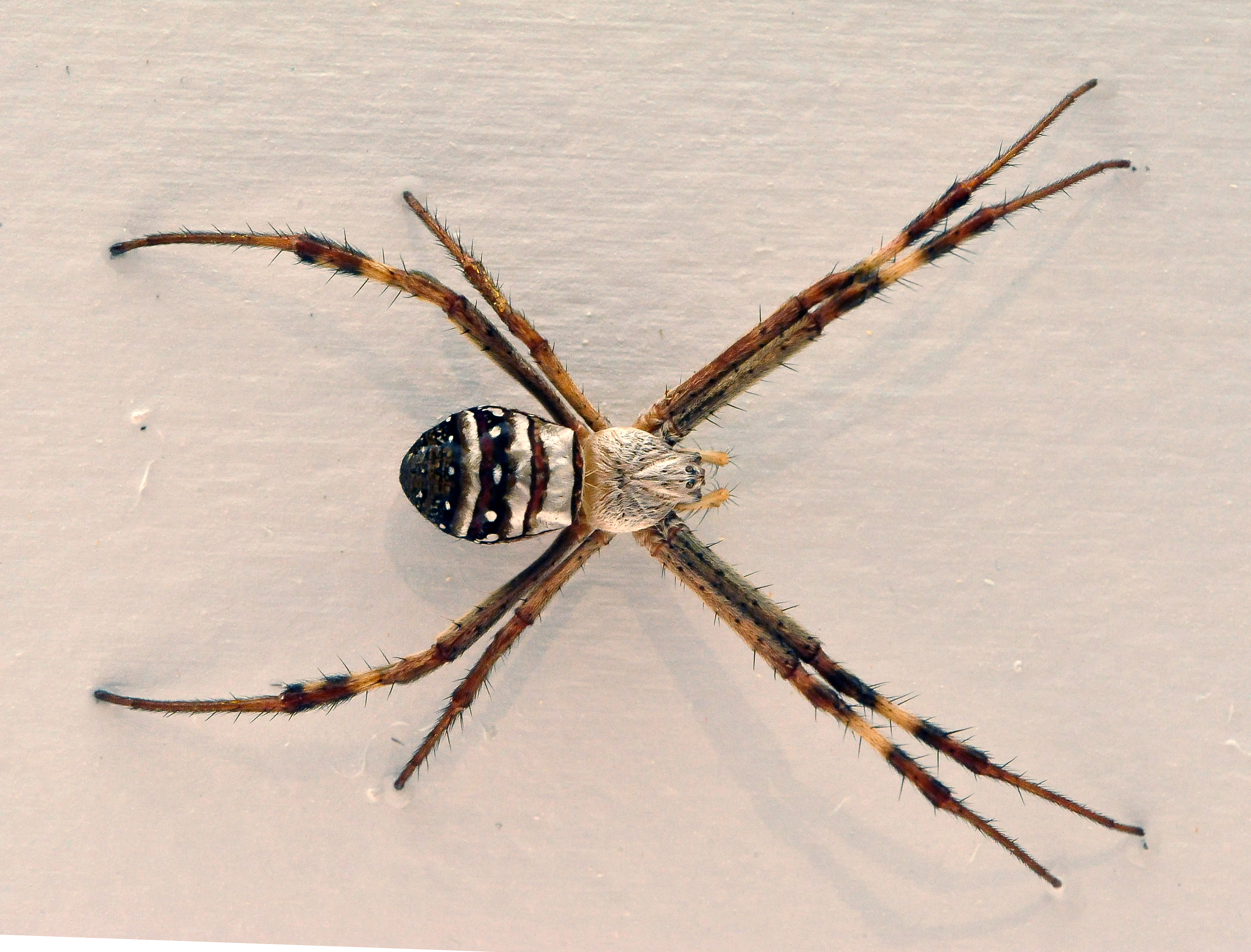 About the St Andrew's Cross SpiderThis well-known spider sits in its web in an "X" shaped cross. It's perhaps the first spider I remember seeing in the garden when I was quite young. According to tradition, Saint Andrew was martyred (executed) on an X-shaped cross, rather than the usual lower-case "t" shaped cross used for crucifixion. Predators: Mantids (e.g. the preying mantis) and birds.