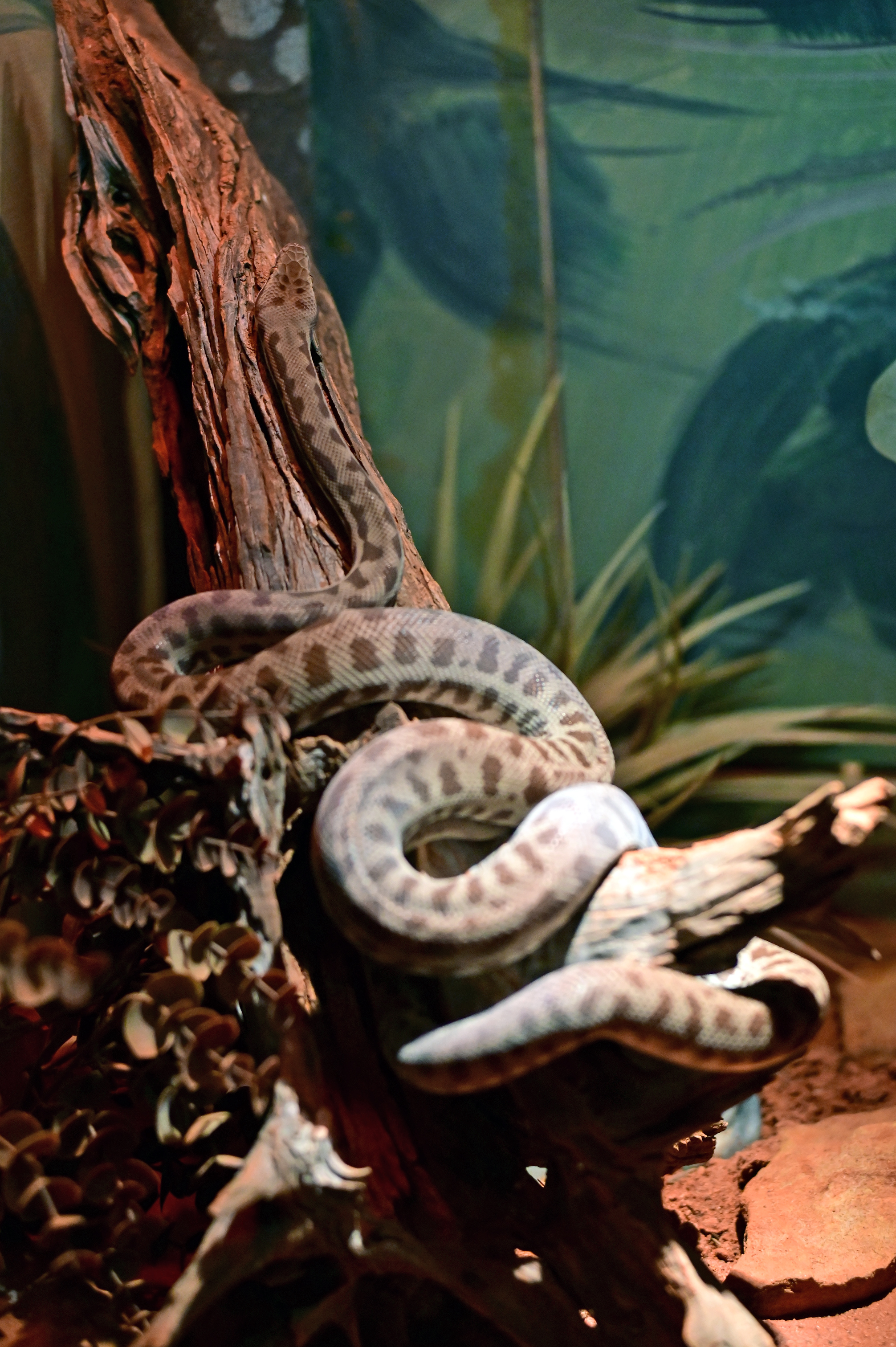 Antaresia stimsoniOther Names: Large-blotched python, inland children's python. Commonly and incorrectly referred to as Stimpson's python. The correct spelling has no "p" in "Stimson" Family: Pythonidae (Python family, about 26 species in the world) Size: Typical 90 cm, smaller than most pythons. Distribution: Much of central and western Australia including much of inland QLD. Status: Vulnerable in NSW. Habitat: It occurs throughout many dry, inland areas, mainly in rocky areas, but also in Eucalyptus woodlands, arid shrublands, and deserts. Occurrence in open or flat areas is unusual. Generally nocturnal, the species occupies crevices, hollows, and holes made by other creatures in termite mounds, the latter offering a controlled climate. It is often recorded at rocky hills or other habitat providing good cover. References: Wilson and Swan, Wikipedia. About the Stimson's PythonStimson's Pythons can be found sometimes around cave entrances at dusk, waiting for bats to come out for the night, so they can eat them. In 2009, four baby Stimson's pythons escaped on board a Qantas airplane, resulting in it being fumigated. Diet: Adults have broad diets, including mammals such as bats and mice, also birds, lizards, frogs and other snakes. A. stimsoni is an ambush predator, spending much of its time waiting for prey, trapping and killing by constriction. Like other snakes, they can go without food for several months. Breeding: Oviparous, with females laying clutches of 7-10 eggs. Females incubate their eggs in typical python fashion by wrapping their bodies around the clutch, leaving only to warm in the sun or when the eggs have hatched. Like all pythons, female Stimson's Pythons actively guard and incubate their eggs. While doing this they shiver to produce extra body heat if it's too cold. Newly hatched Stimson's Pythons are totally independent of their parents, and start feeding themselves, after one or two weeks. Danger: The species is kept as a pet and successfully bred in captivity. It is easily handled and rarely bites, and is listed as an easily maintained, not rare or endangered, and commercially available pet herpetofauna. Economics: Stimson's pythons are sold and kept as pets in some Australian states.