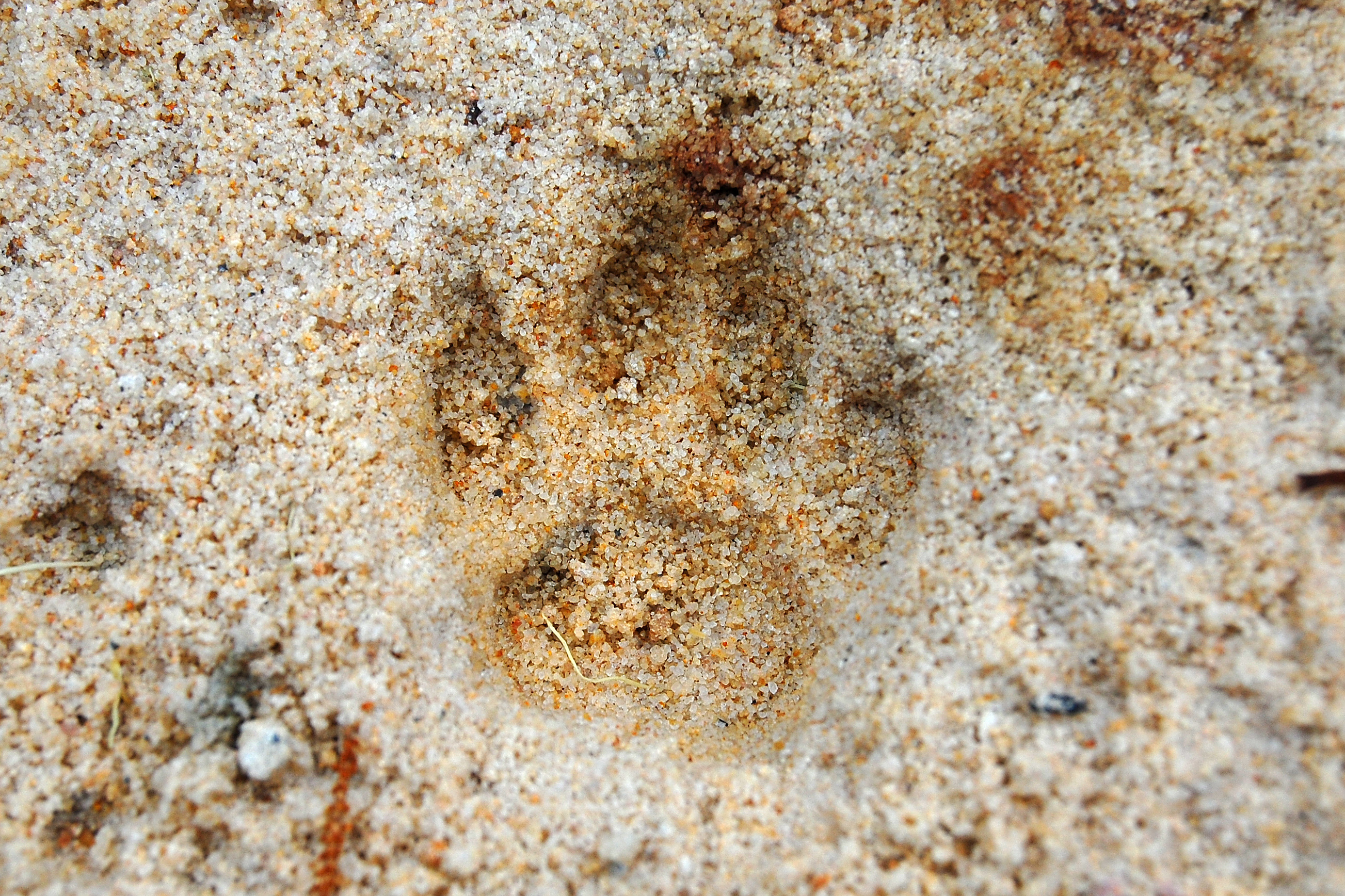 Animal tracks from the tracking box. These animal tracks were found long after the animal was gone, leaving a record of its presence there. High Resolution 3008 x 2000.