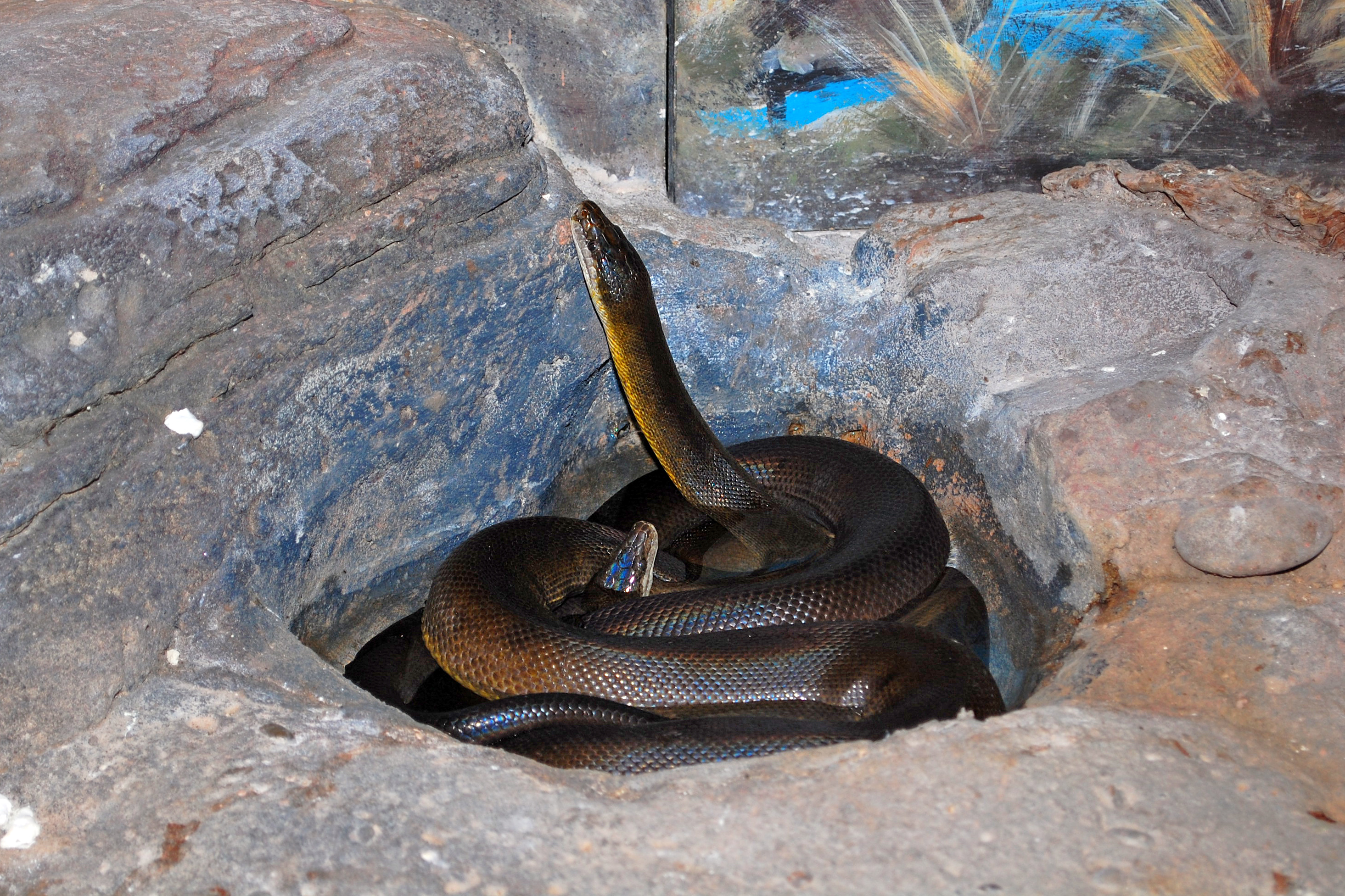 Liasis macklotiOther Names: Macklot's python. A very similar looking species, Liasis fuscus, is also called the Water Python. Family: Pythonidae (Python family, about 26 species in the world) Size: To 2.1 metres Distribution: Northenmost coastal parts of Australia, Indonesia, East Timor, and Papua New Guinea. Habitat: Presumably they like to be near water. References: Wikipedia. About the Water PythonCan be bad-tempered if not treated right. From Wikipedia, "Liasis mackloti is a snake that is known and sold in the live exotic animal trade, or exotic pet trade, bringing it far beyond its native range, to as far as the United Kingdom, and North America, where it is sold and kept in captivity from pet stores, speciality shops, and conventions." Breeding: The Water Python breeds easily in captivity. They lay eggs.