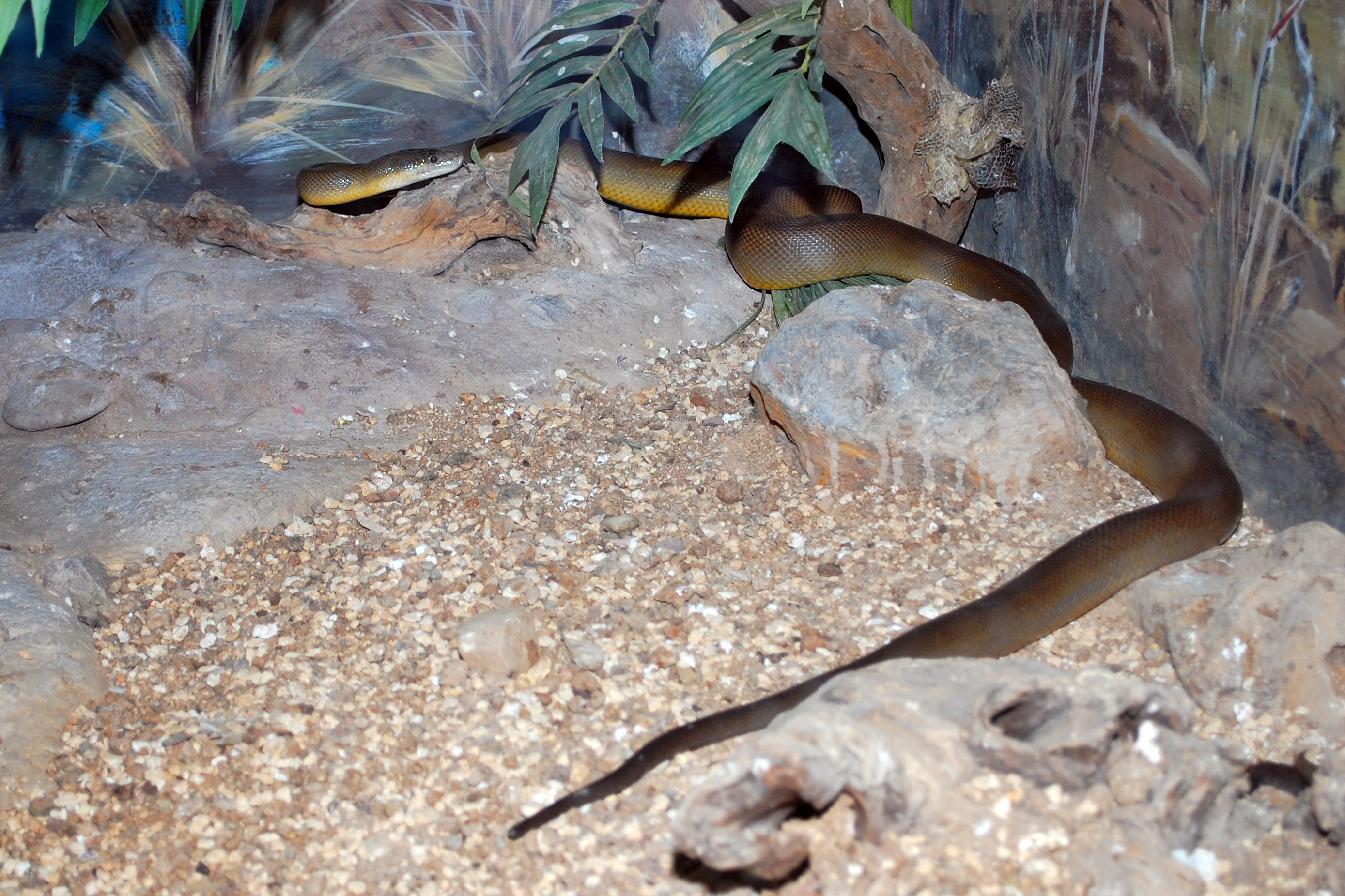 Can be bad-tempered if not treated right. From Wikipedia, "Liasis mackloti is a snake that is known and sold in the live exotic animal trade, or exotic pet trade, bringing it far beyond its native range, to as far as the United Kingdom, and North America, where it is sold and kept in captivity from pet stores, speciality shops, and conventions."