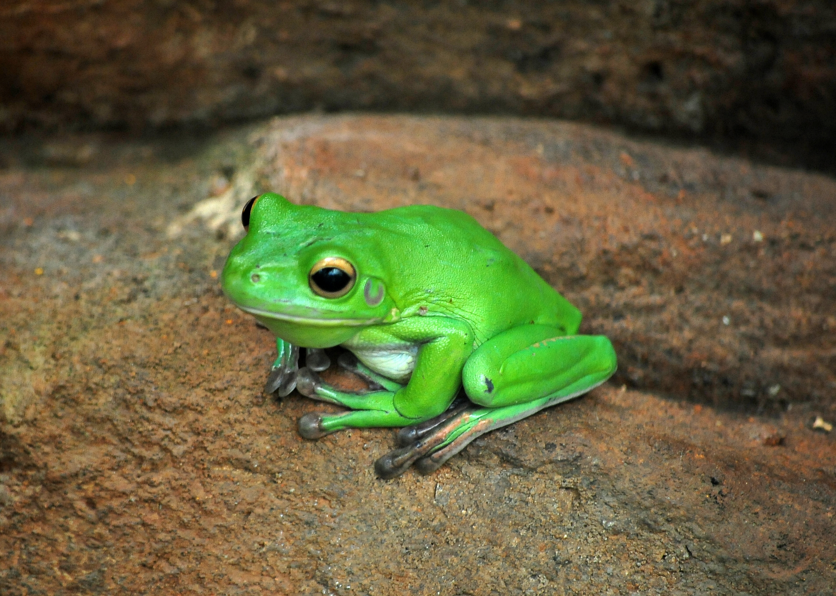 Other Names: Nyctimystes infrafrenatus, New Guinea treefrog, Giant tree frog, Australian giant treefrog. Family: Pelodryadidae, Genus Litoria (Australasian tree frogs) which has 93 species, and usually several new species identified every year. Size: 6-13.5 cm. The White-lipped Tree Frog is the world's largest tree frog (equal winner with the Cuban Tree Frog). Distribution: Coastal regions of north to mid-Queensland including Cape York. Status: Secure Habitat: It lives in rainforests, cultivated areas, and around houses in coastal areas, and is restricted to areas below 1200 m in altitude. References: Clulow and Swan, Wikipedia. About the White-lipped Tree FrogThe body of the White-lipped Tree Frog is large and slender. It has a white stripe along its lower lip and another white stripe along the outer edge of its foot. Its fingers are half-webbed, and its toes are fully webbed. The white-lipped tree frog has large toe pads, which aid it to climb. It can live to over 10 years in the wild. Diet: Its diet is mainly insects and other arthropods.